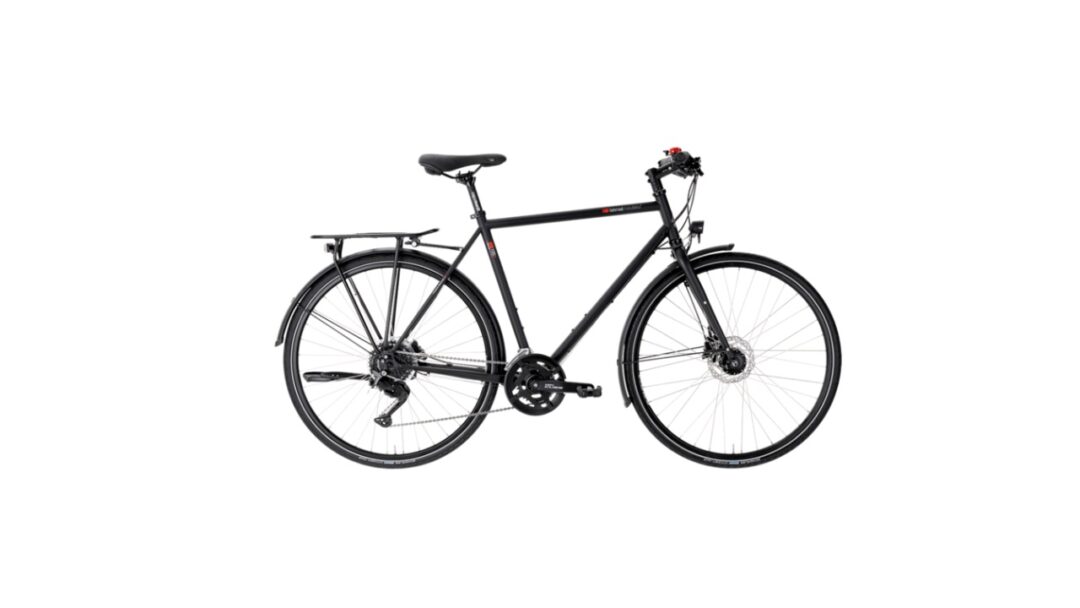 In der hier vorgestellten Sportversion ist es als echter Allrounder mit einer 18-Gang-Shimano-Cues-Kettenschaltung und einer Shimano-Scheibenbremse ausgestattet. Natürlich bietet Ihnen der T-100 ein hohes Maß an Sicherheit, nicht zuletzt durch die beliebten Schwalbe Citizen-Reifen. Darüber hinaus sind der Busch & Müller-Scheinwerfer sowie das Rücklicht mit einer Standlichtfunktion ausgestattet, sodass Sie auch dann sichtbar bleiben, wenn Sie beispielsweise im Dunkeln an einer Ampel anhalten. Komfort für jeden Tag bietet ein besonders bequemer Sattel von Selle Royal.